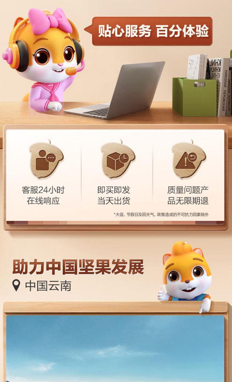 三只松鼠-福祿壽喜1363g 配置: 三只松鼠-夏威夷果68g 三只松鼠-小白杏核100g 三只松鼠-紙皮核桃/原味/120g 三只松鼠-果丹皮50g 三只松鼠-0蔗糖沙琪瑪200g 三只松鼠-小圓餅/奶鹽味/100g 三只松鼠-地鍋脆片85g 三只松鼠-乳酸菌/原味/400g 三只松鼠-西梅汁240ml