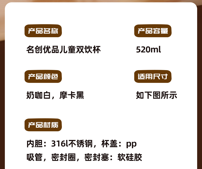 內(nèi)膽:316l不銹鋼, 杯蓋:pp 吸管, 密封圈,密封塞:軟硅膠 功能:雙飲 顏色:黑色、白色 包裝:彩盒 功能:一鍵速開(kāi),雙飲 適用人群:男士,女士 適用場(chǎng)景:職場(chǎng),家用,車用,通用