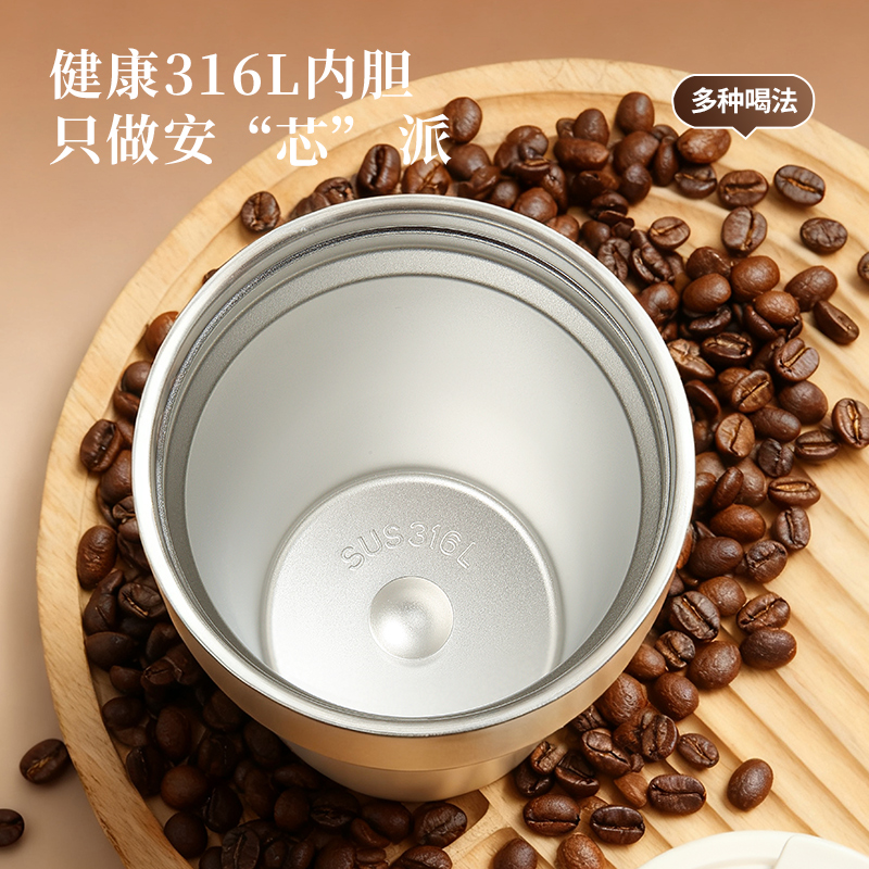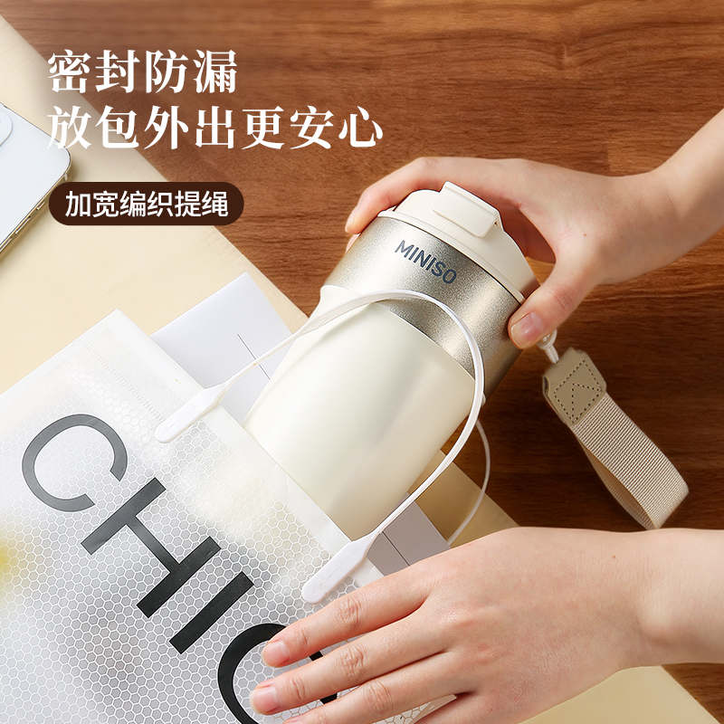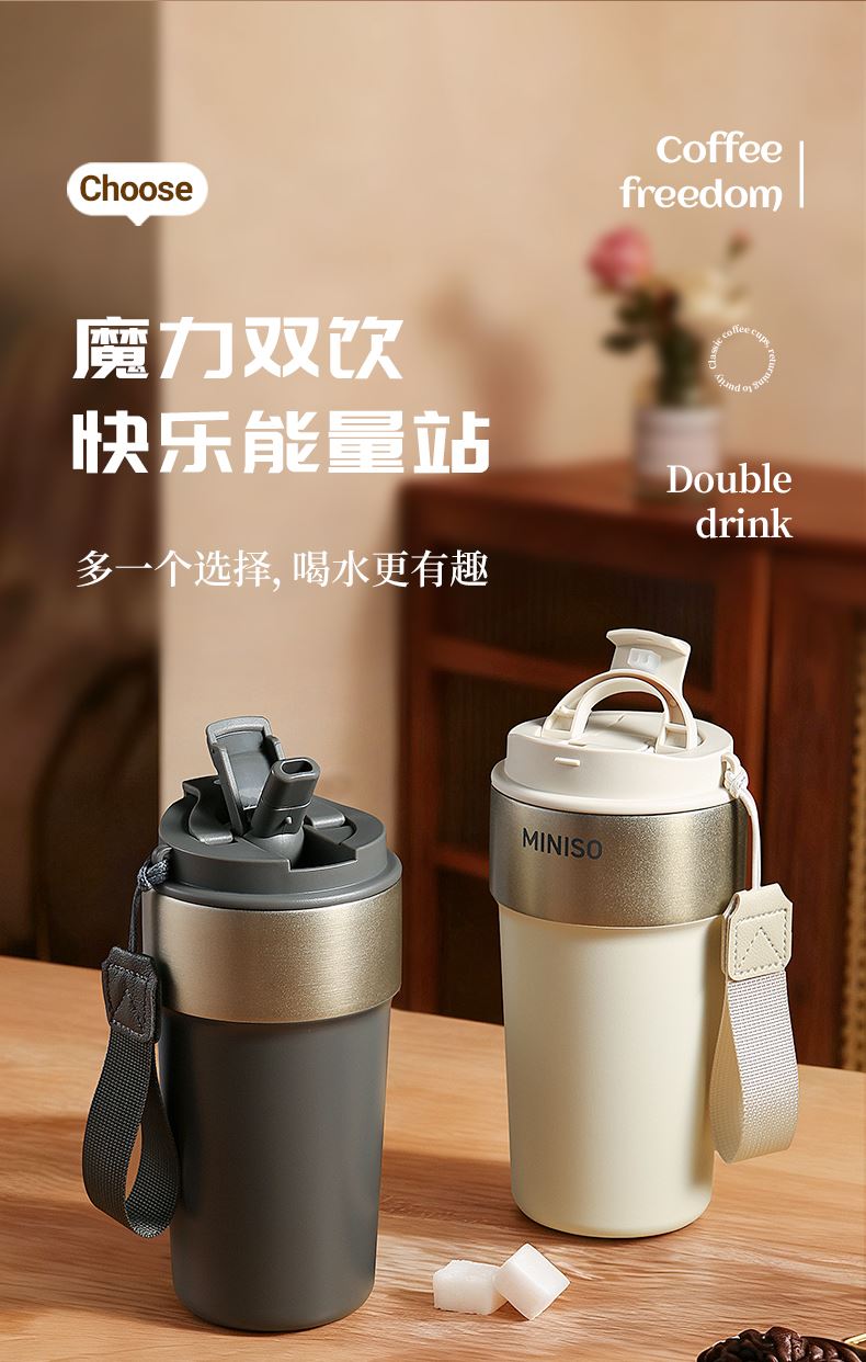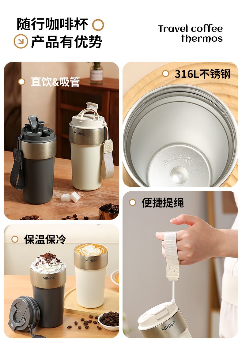 名創(chuàng)優(yōu)品316L不銹鋼咖啡杯高顏值便攜吸管杯520ml