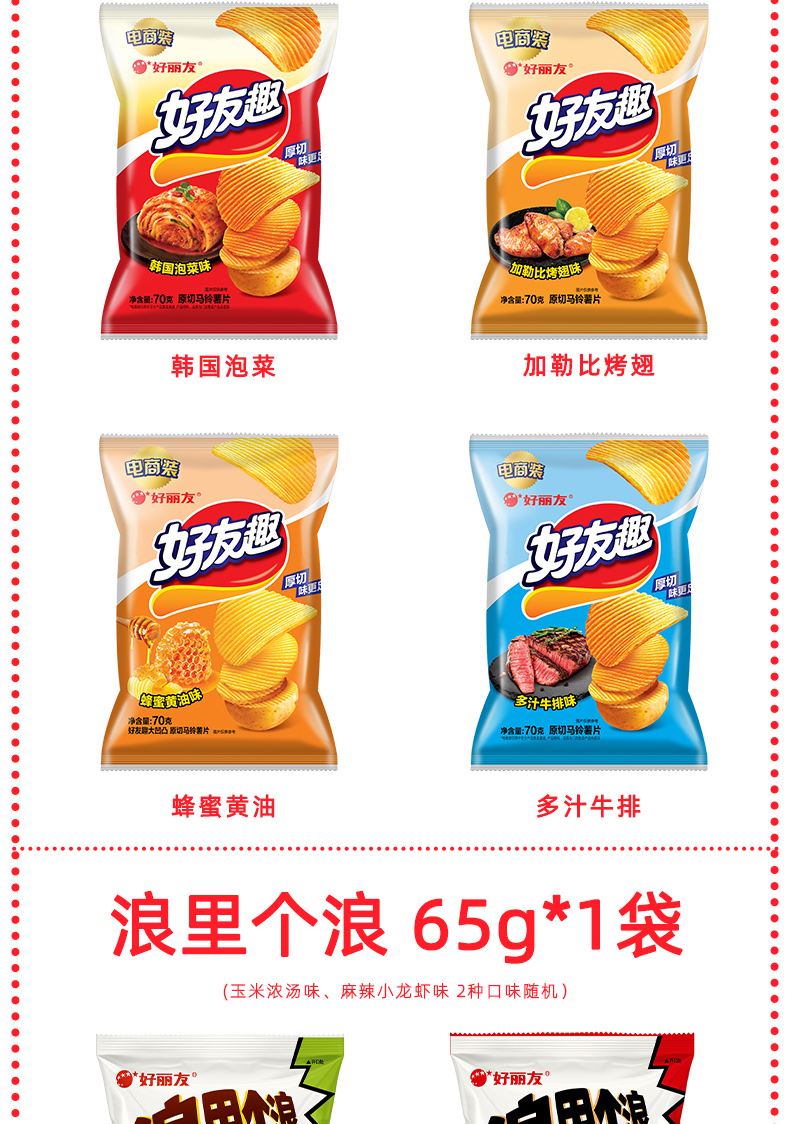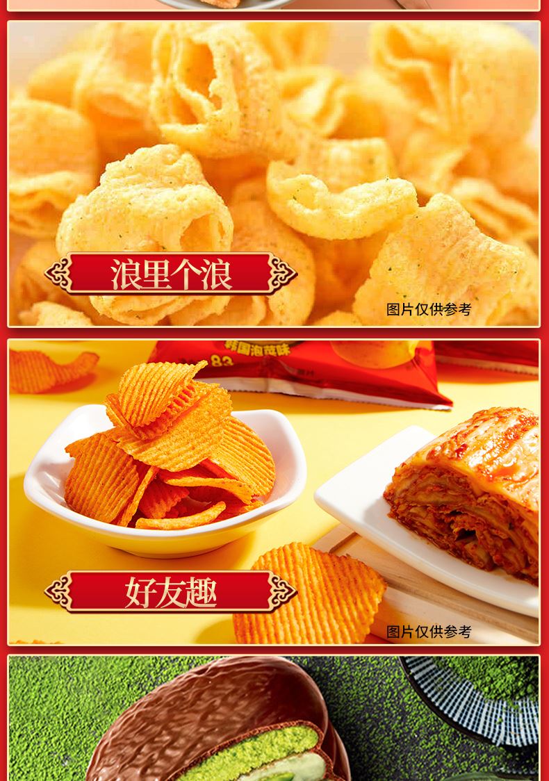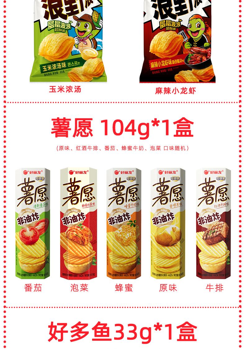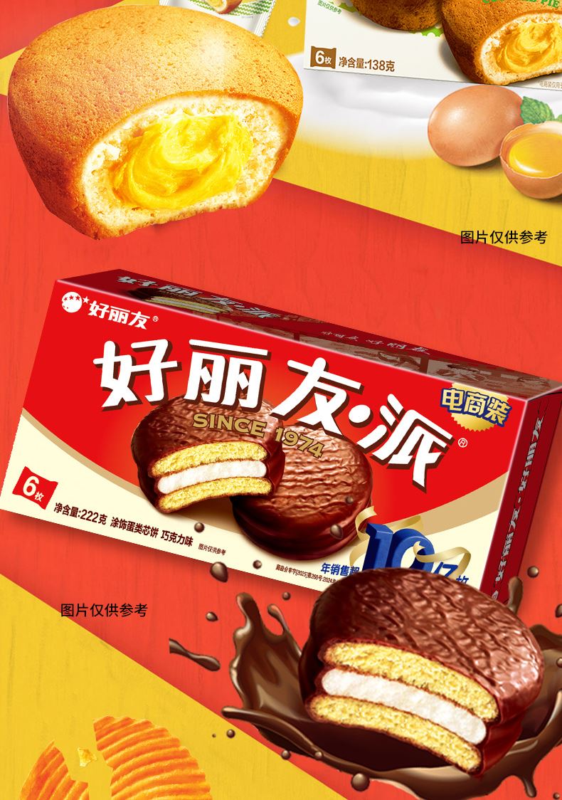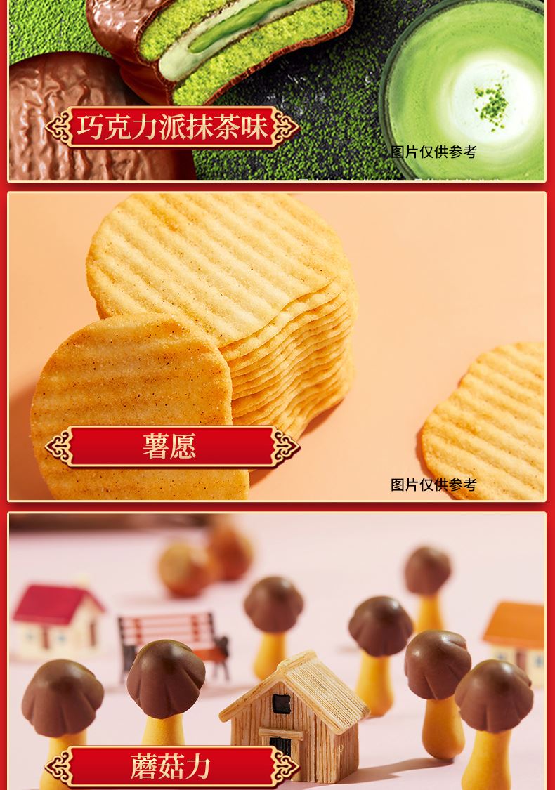 好麗友 聚享好禮 禮盒1234g 配置: 好麗友 巧克力派6枚204g×1 好麗友 蛋黃派6枚138g×1 好麗友 清新抹茶派6枚216g×1 好麗友 Q蒂摩卡巧克力味6枚168g×1 好麗友 浪里個(gè)浪65g×1 好麗友 薯愿2P104g×1 好麗友 好多魚(yú)33g×1 好麗友 好友趣70g×1 好麗友 蘑古力牛奶味48g×1 好麗友 蘑古力榛子味48g×1 好麗友 呀土豆番茄味70g×1 好麗友 呀土豆蜂蜜黃油味70g×1