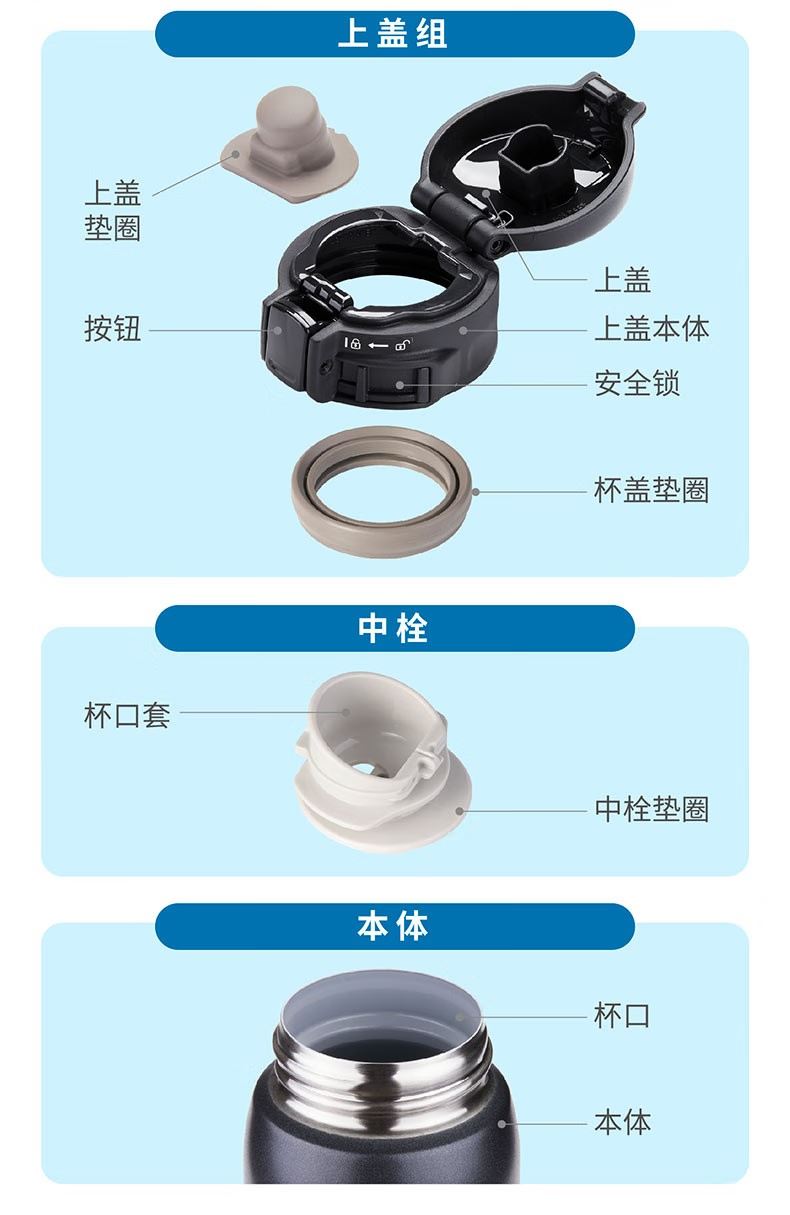 品 牌:象印ZOJIRUSHI 型 號:SM-SXE48 顏 色:BA黑色-WA白色-NL金色-AA藍色-XA不銹鋼色-PA粉色 容 量:480ml 類 型:彈蓋杯 材 質:304不銹鋼 保 溫:6小時約60°C 保 冷:6小時約10°C以下 產 地:泰國