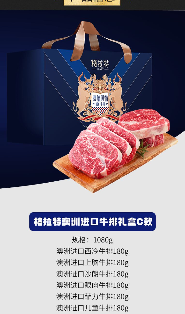 格拉特澳洲進口牛排禮盒C款1080g 禮品已成功加入PPT!