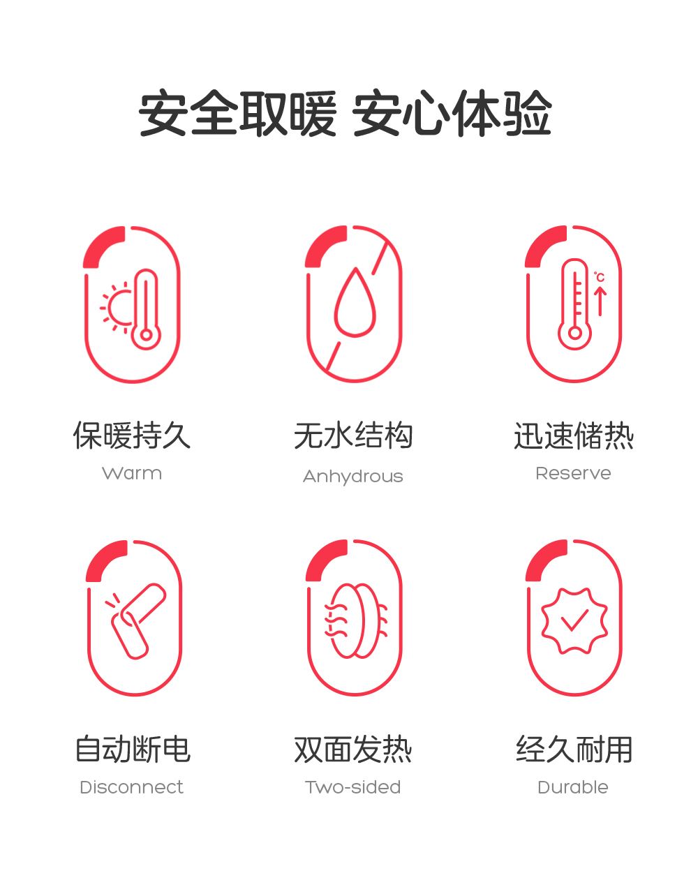 賣點 型號:DR30-2 功率:300W 功能:內置雙溫控器,自動控混,自動斷電,雙面均勻發熱,安全可靠, 包裝:紙盒 參數 1、采用磨砂噴塑鐵制外殼,堅固耐用手感更佳 2、內置雙溫控器,自動控混,自動斷電,安全可靠 3、采用多層儲熱材質,6-10分鐘快速儲熱,雙面均勻發熱持久溫暖 4、含防燙布套